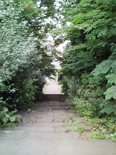 石段を下り木のトンネルを抜けたら向こうは、住宅街でした。