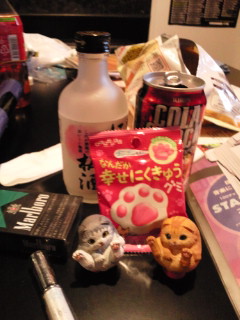 でも自分でゲットしたのノルベサで買った匠魂の仮面ライダー響鬼(左写真内左上)と、ゲーセンで取ったモフモフした猫の頭だけっていうwww