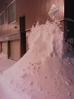 仕事場近くの駐車場で雪像のようにキレイな形で埋まった車を見たよ(笑) 前後左右360度真っ白っけっけになってた。