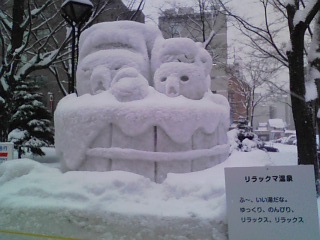 そのたい焼きを買った店の真ん前にあった雪像がちょっと笑えた。↓