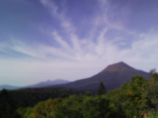 奥に見える山で左側のピョッと飛び出てるとこが「雌阿寒岳(メアカンダケ)」。