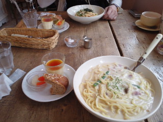 一度行ったことあるBLUE TULIPってとこでランチセットのクリームシチューパスタ食った。美味であった+゚。・