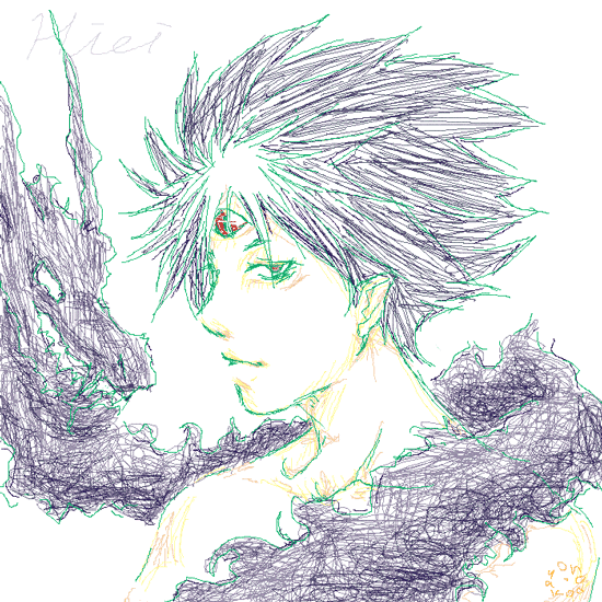 ってか手の赴くままに描こうと思ったら描けなくて、描いて消して描いて消してやってたら気付いたら飛影描いてYO!どんだけ好きなんだよ!(笑)