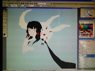 前髪は最初垂らして描いてた。どんなんだったか思い出した時はそりゃもう興奮しました(笑)