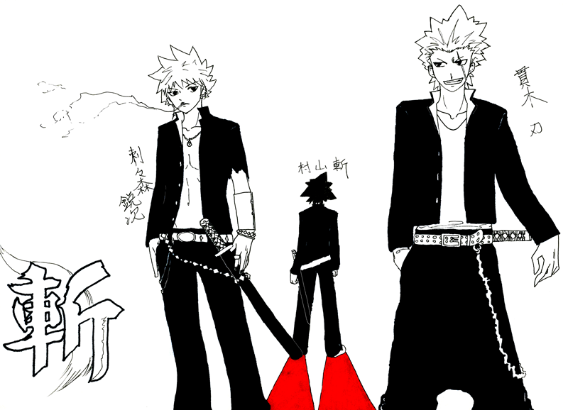 後ろの斬を見てるつもりで描いてたのに、気付いたら見詰め合ってた鋭次と刃(笑)