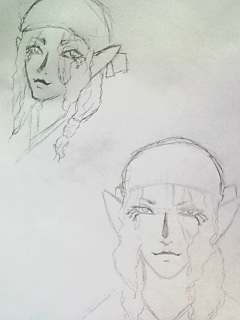 左上が、法事行く途中に車の中で揺れに耐えながら携帯のサブ画面のちっさい明かりだけを頼りに描いたやつ。これが初描き。