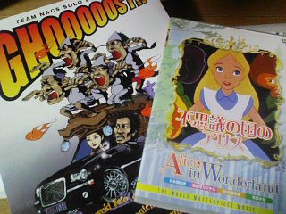 最近ゲットした「不思議の国のアリス」のDVDと「ゴースト」の芝居のチケットです。